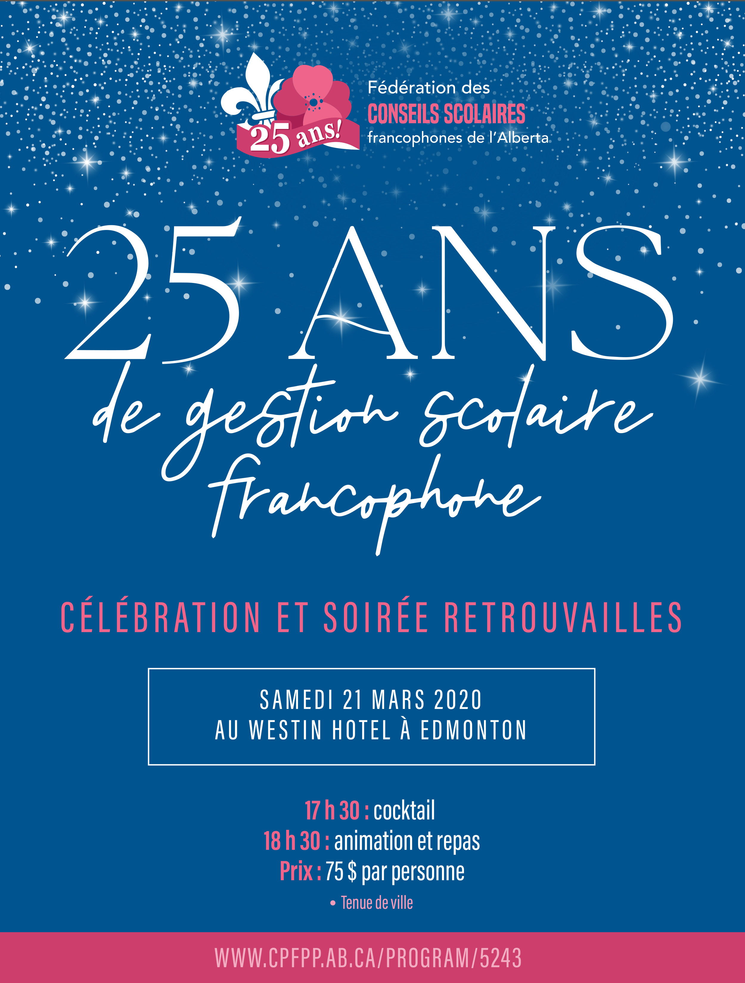 Publicité «25 ans de gestion scolaire francophone», cliquer ICI.